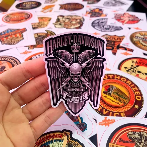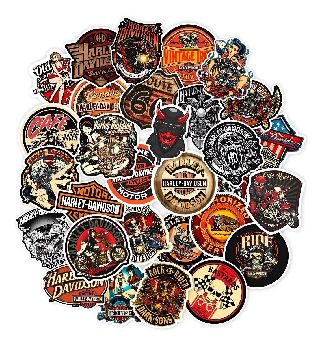 Cartela de adesivos retrô vintage, impermeáveis e de alta qualidade. Ideais para personalizar motos, carros, notebooks, garrafas e muito mais, com estilo clássico e durabilidade garantida.