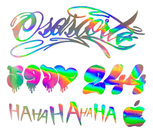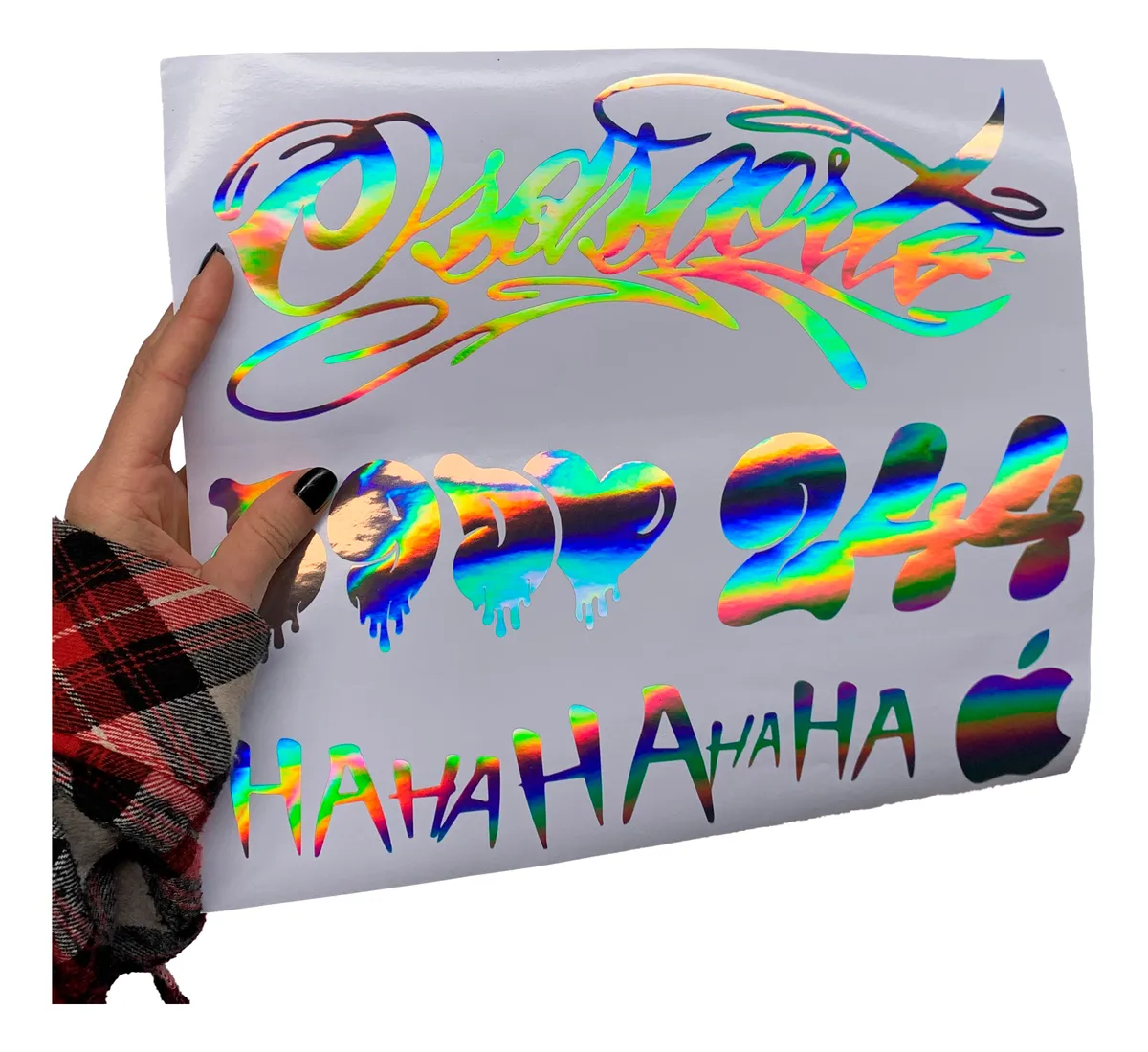Cartela de Adesivos produzidos em material de alta qualidade, com efeito holográfico que reflete as cores de forma incrível. Resistentes e cheios de estilo para personalizar qualquer superfície!